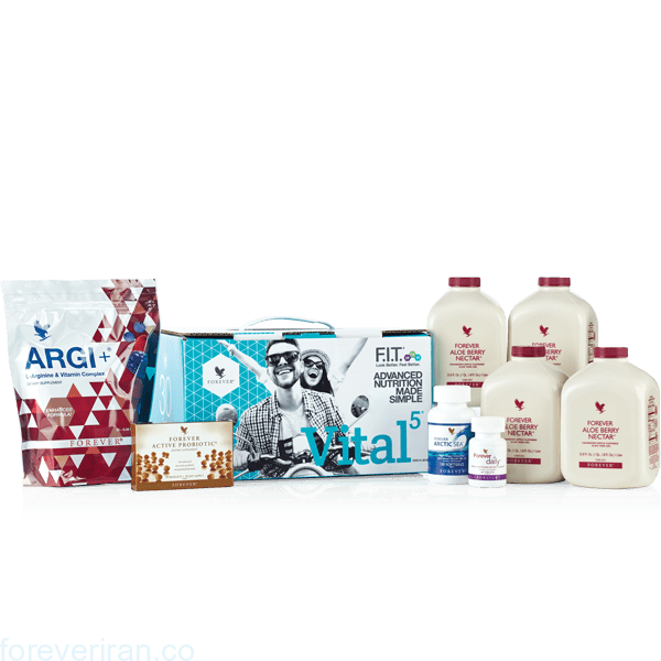 Vital5 ترکیبی شگفت انگیز از پنج محصول شرکت فوراور است که با کمک یکدیگر می توانند کلیه مواد مغذی مورد نیاز برای بدن شما را تامین نموده تا شما اندامی زیباتر و احساس بهتری داشته باشید. این محصول یک پایه محکم از مواد مغذی پیشرفته برای بدن تامین می کند که اساس تمامی برنامه های تغذیه ای است. این محصول به همراه برنامه روزانه شما، می تواند احساس مطلوب تری را برای شما به ارمغان آورد .